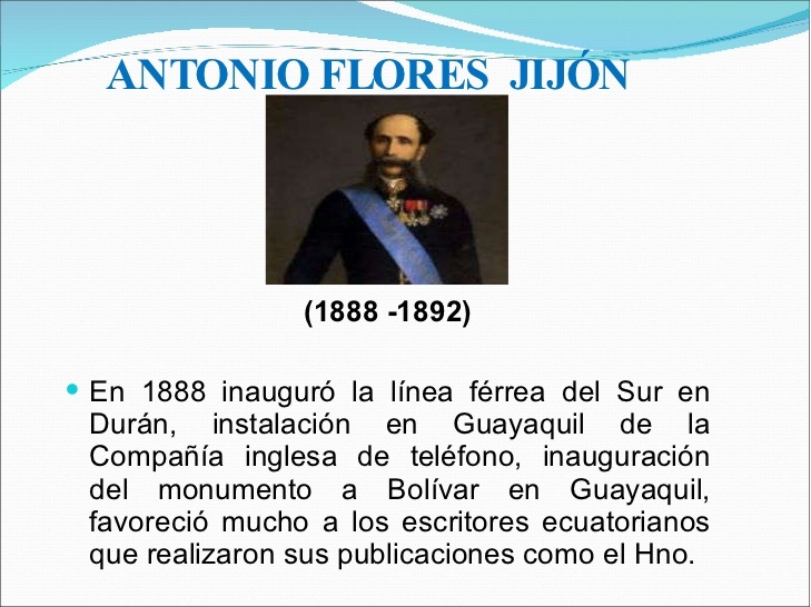 Antonio Flores Jijón fue un político ecuatoriano, presidente entre los años de 1888 y 1892. Siendo el trigésimo quinto mandatario de la república.