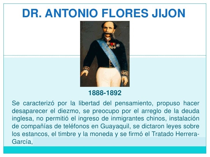 Antonio Flores Jijón fue un político honorable, inteligente, ilustre y un excelente administrador de Ecuador. Fue Ministro Plenipotenciario, con funciones diplomáticas en Washington, Londres y París. Ocupo la presidencia de la república desde 1888 a 1892, y en su gobierno se suscribió el Tratado García – Herrera, en los asuntos limítrofes del país con el Perú. Sigue leyendo y descubrirás mucho más, sobre este personaje de la política ecuatoriana. (Puedes ver también: Consejo de la Judicatura en Ecuador)